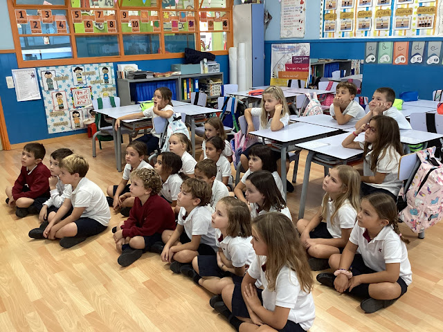 Castanyes”, davant els nostres companys d’infantil i de primària i hem berenat al pati amb els nostres padrins.